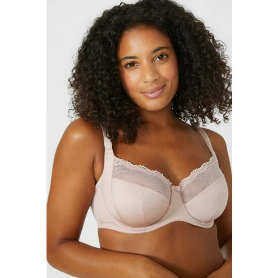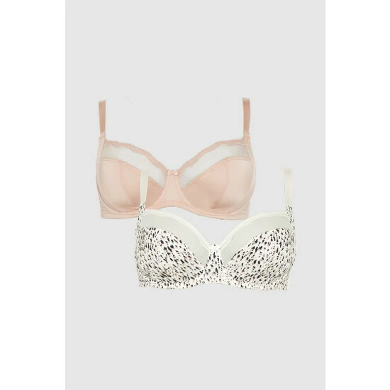 Main: 86% Polyamide, 14% Elastane/Spandex & Cup Lining: 100% Polyester. Model wears size 34DD. Wash on 40, very gentle machine wash. Multipack, also available in A-D.