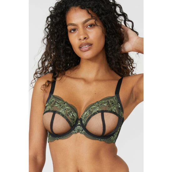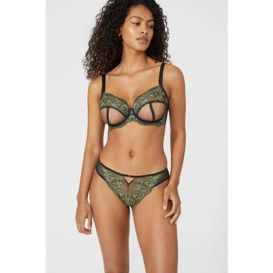 Main: 53% Polyamide, 9% Polyester, 9% Elastane/Spandex & Lining: 100% Cotton. Model wears size 34DD. Wash on 40. Matching knickers and A-D bra available.