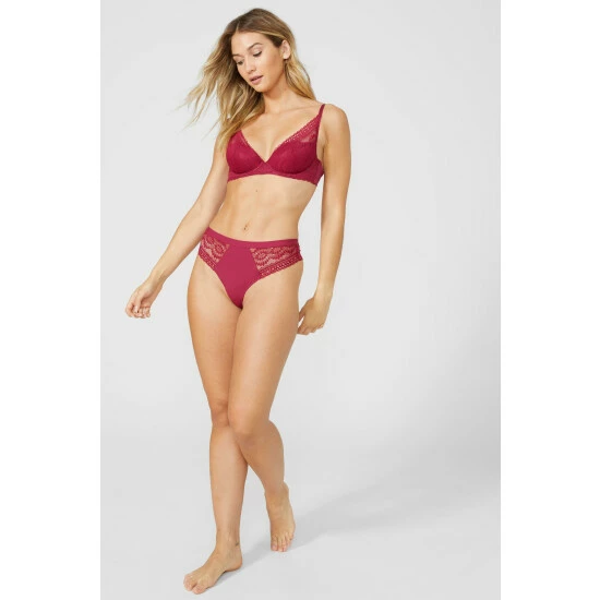 RECYCLED MATERIALS. Main: 86% Polyamide, 14% Elastane/Spandex & Lining: 100% Cotton. Model wears size 10. Wash on 40, very gentle machine wash. Matching Bralette, A-D bra, DD+ bra, brazilian, knicker and bodysuit available. As well as in alternative colours.