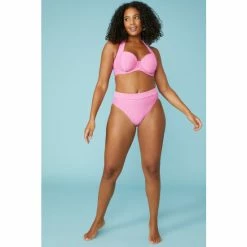 Gorgeous Textured Halter Non Pad Plunge Bikini Top For Female